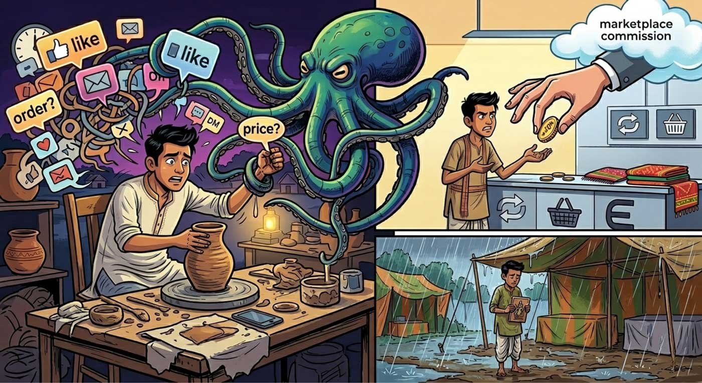 একজন কারুশিল্পীর সবচেয়ে বড় সম্পদ তাঁর গল্প। কোন মাটি থেকে এসেছেন, কোন ঐতিহ্য থেকে শিখেছেন, কোন ভাবনা থেকে তৈরি হয়েছে একটা পণ্য — এই গল্পই একটা হাতে-তৈরি পণ্যকে শুধু “জিনিস” থেকে আলাদা করে তোলে। নিজের ই-কমার্স সাইট মানে এই গল্প বলার জায়গা। সেখানে আপনার প্রতিটি পণ্যের পেছনের ভাবনা থাকতে পারে। আপনার কাজের প্রক্রিয়ার ছবি থাকতে পারে। আপনার মূল্যবোধ, আপনার উৎস — সব কিছু। এই গল্পই ক্রেতাকে শুধু একবার কেনা থেকে বারবার কেনার দিকে নিয়ে যায়।