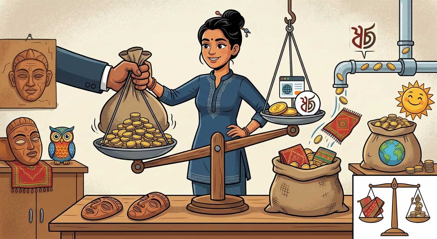 সোজা হিসেব। কোনো কমিশন নেই, কোনো লিস্টিং ফি নেই। আপনি যদি মাসে পঁচিশ হাজার টাকার পণ্য বিক্রি করেন, তাহলে পঁচিশ হাজার টাকাই আপনার। Etsy-তে এই বিক্রিতে শুধু ট্রানজ্যাকশন ফি আর লিস্টিং চার্জেই দুই হাজার টাকার বেশি চলে যেত। Amazon-এ আরো বেশি। এই পার্থক্যটা ছোট মনে হতে পারে। বছরের হিসেবে এটা একটা উল্লেখযোগ্য অঙ্ক — এবং সেটাই আপনার পকেটে থাকার কথা।